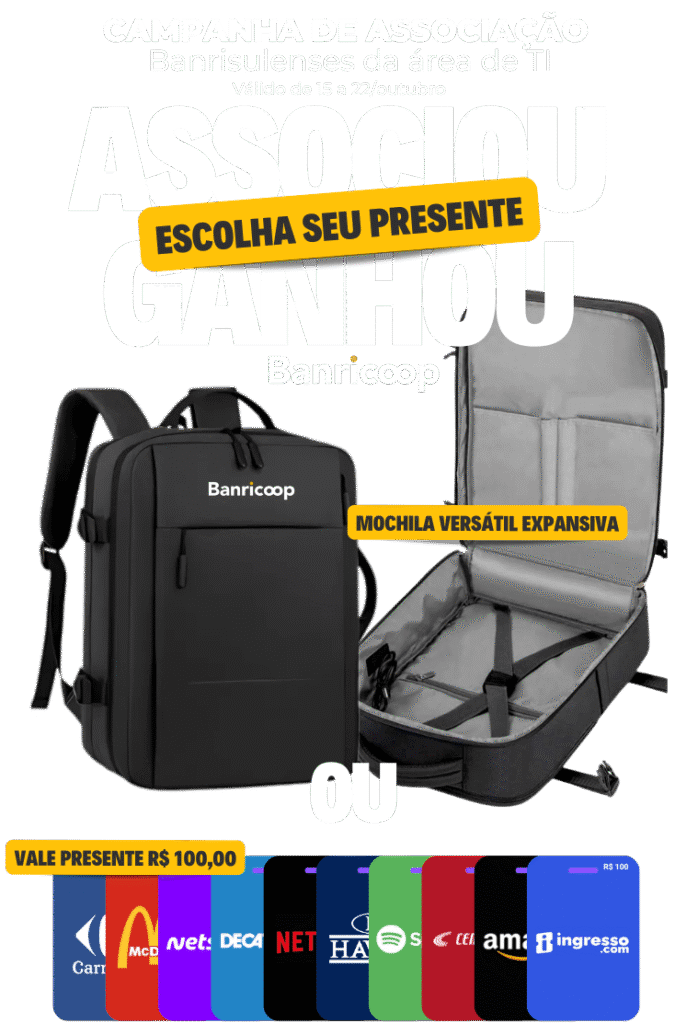 *Associe-se de 15 a 22 de outubro e escolha uma mochila ou um vale-presente de R$ 100,00 (Carrefour, McDonald’s, Netshoes, Decathlon, Netflix, Havan, Spotify, Centauro, Amazon ou Ingresso.com).